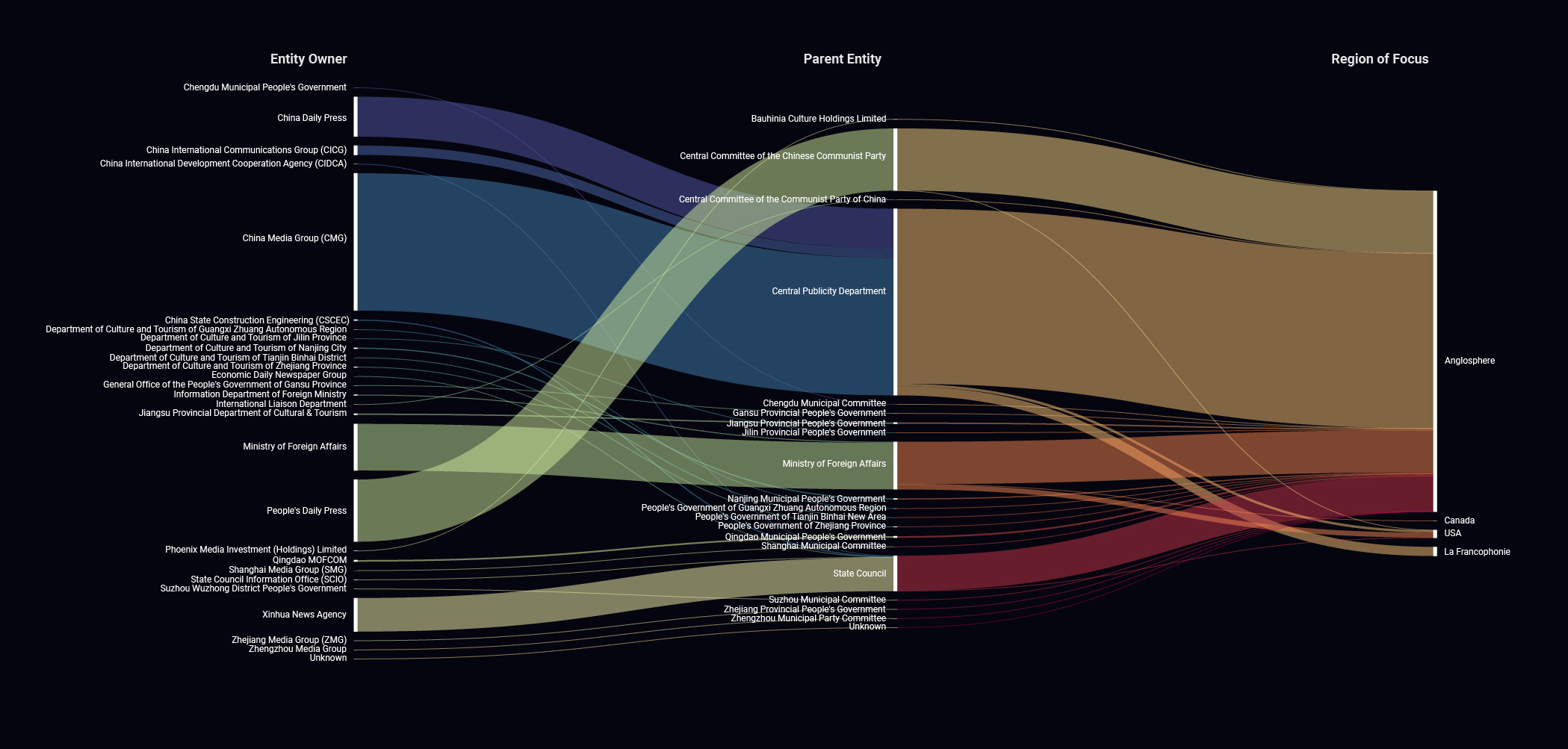 - Sankey Diagram - Widths of the graph lines correlates to the total number of followers under that entity